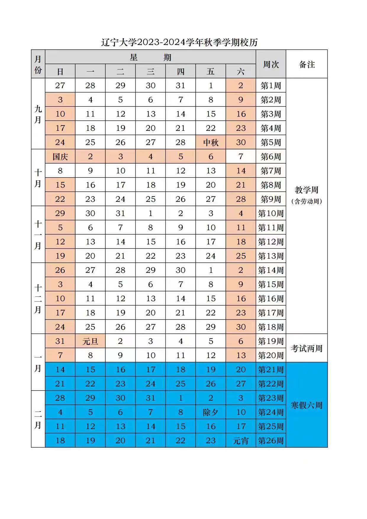 bat365中文官方网站2023-2024学年秋季学期校历