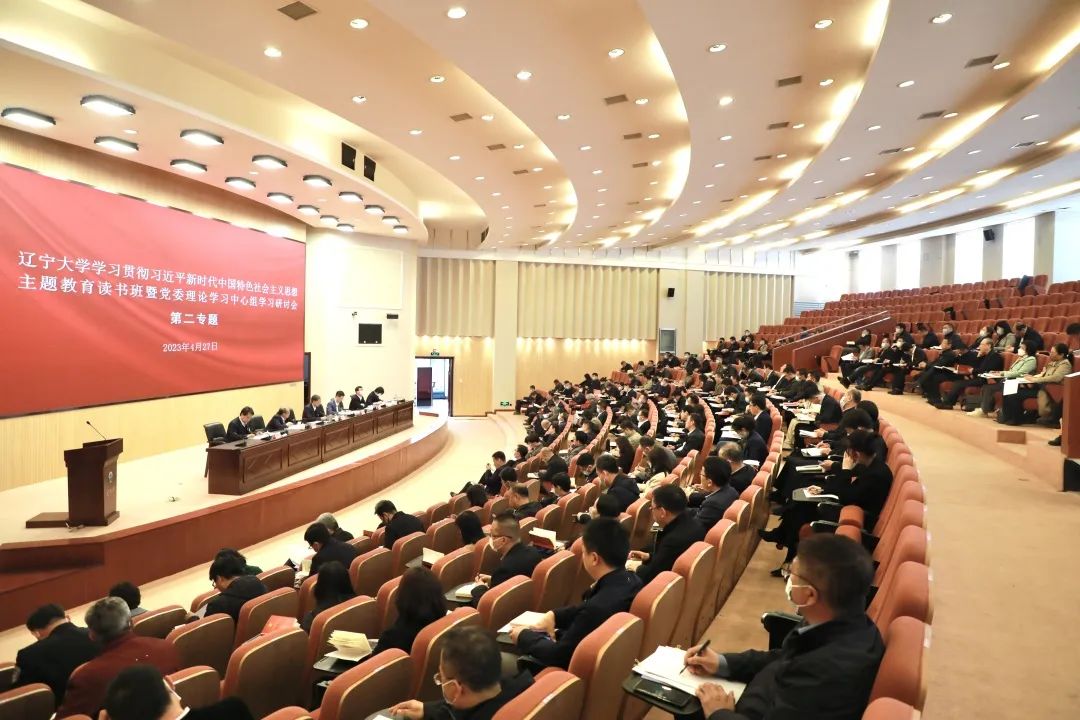 4月27日上午,bat365中文官方网站学习贯彻习近平新时代中国特色社会主义思想主题教育读书班暨党委理论学习中心组召开第二专题学习研讨会,对“感悟思想伟力、保持战略定力,用创新理论指导中国式现代化辽宁实践”这一专题进行集中学习。学校党委书记潘一山主持读书班并作交流发言。学校党委副书记、校长余淼杰出席读书班并领学。