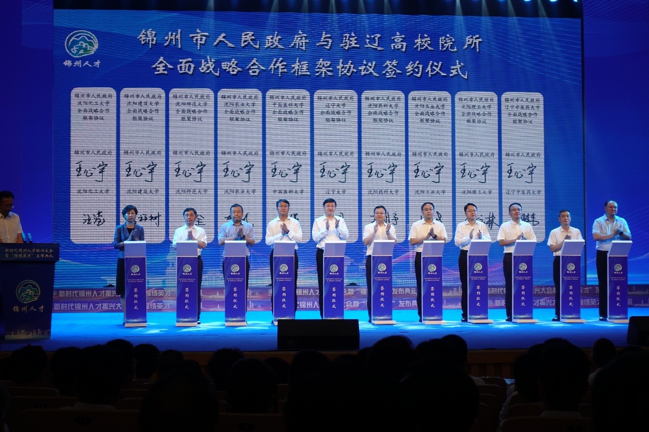 会上,锦州市与46家高校院所举行签约仪式,bat365中文官方网站与锦州市人民政府签订战略合作补充协议,巩固合作基础,在更大范围、更宽领域、更深层次推进校地合作, 为助推锦州高质量发展贡献更多辽大智慧和力量,校地携手为辽宁实现全面振兴新突破作出更大贡献。
