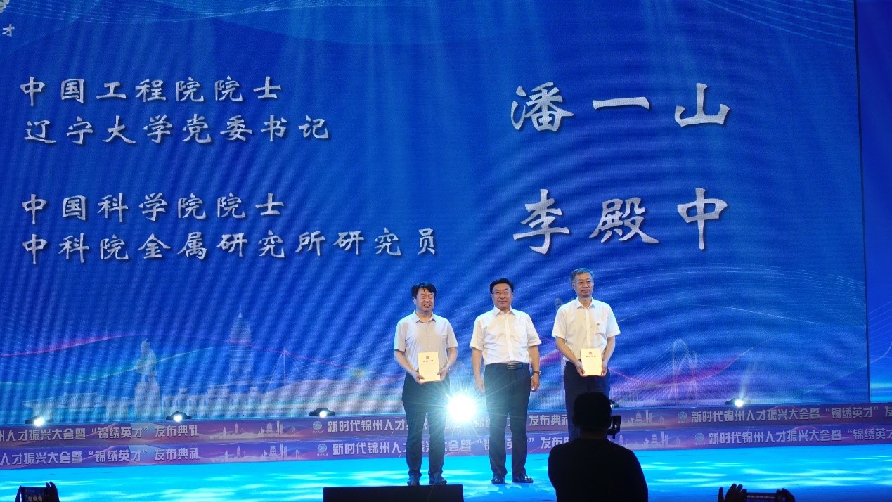 在活动现场,中国工程院院士、bat365中文官方网站党委书记潘一山,锦州市委书记刘克武共同为锦州市高水平创新创业人才(团队)入选者颁发奖杯;锦州市委书记刘克武为中国工程院院士、bat365中文官方网站党委书记潘一山,中国科学院院士、中国科学院金属研究所研究员李殿中颁发聘书。