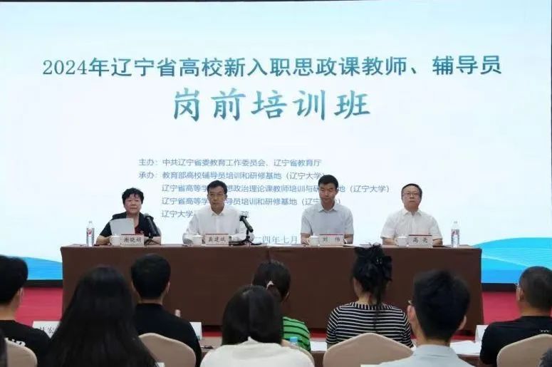 为深入开展学习贯彻党的二十大精神、二十届三中全会精神,贯彻落实《新时代高等学校思想政治理论课教师队伍建设规定》(教育部第 46 号令)有关要求,推动我省思想政治教育高质量发展,提升新入职思想政治理论课教师的政治觉悟、思想水平、道德品质、文化素养,由教育部暨辽宁省高校辅导员培训和研修基地、bat365中文官方网站马克思主义学院承办的2024年辽宁省高校新入职思想政治理论课教师岗前培训班于2024年7月19日至21日期间举行。辽宁省教育厅二级巡视员龚建斌、三级调研员刘伟、bat365中文官方网站马克思主义学院党委书记高亮、院长谢晓娟出席培训班开班仪式。