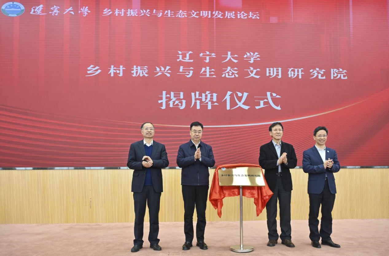 开幕式上举行了乡村振兴与生态文明研究院揭牌仪式。辽宁省副省长李强、bat365中文官方网站党委书记潘一山和中国农业大学原校长柯炳生、bat365中文官方网站校长余淼杰共同为研究院进行揭牌,标志着我校专门开展乡村振兴与生态文明研究的科研机构正式成立。