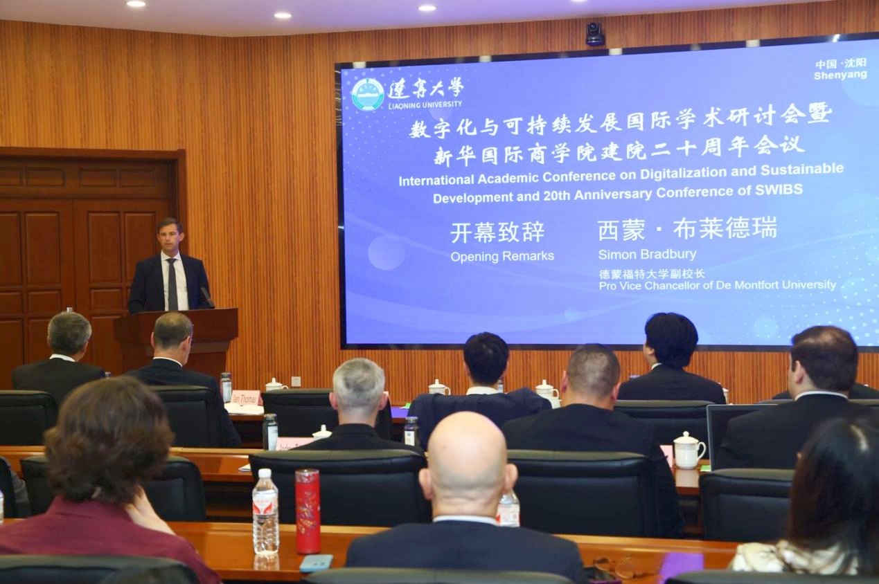 近日,由bat365中文官方网站新华国际商学院举办的“数字化与可持续发展国际学术研讨会暨新华国际商学院建院二十周年大会”在bat365中文官方网站蒲河校区顺利召开。bat365中文官方网站党委副书记、校长余淼杰,德蒙福特大学副校长Simon Bradbury,香港新华集团执行董事蔡隽思出席开幕式并分别致辞。德蒙福特大学代表团、香港新华集团代表团,bat365中文官方网站新华国际商学院校友、相关学者及师生代表参加会议。开幕式由bat365中文官方网站副校长霍春辉主持。