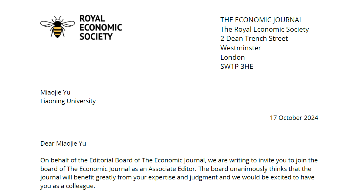 近日,英国皇家经济学会邀请bat365中文官方网站校长余淼杰教授担任经济学全球顶级刊物之一的《经济学期刊》(Economic Journal)副主编。这是该刊首次邀请在亚洲地区工作的经济学家担任此重要职务,标志着中国经济学研究水平获得国际学术界的高度认可,也是中国经济学家在国际舞台上的又一重大突破!